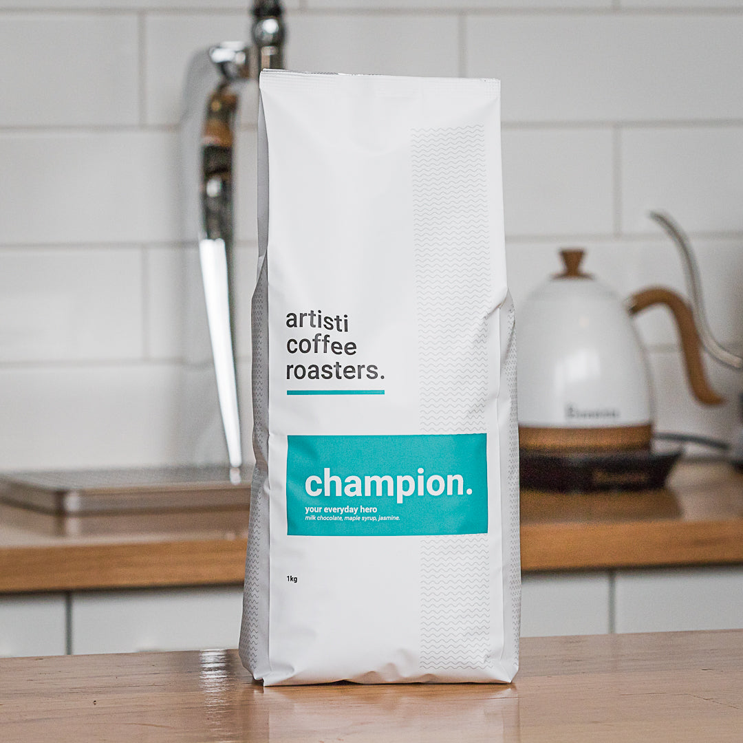 Our most popular coffee blend, Champion is a medium roast that has a dynamic taste profile. Champion strikes the perfect balance between strength and flavour and is the flagship coffee blend for Artisti Coffee Roasters.