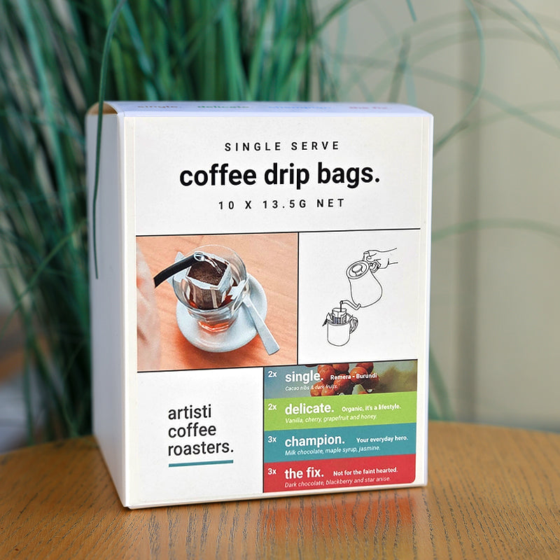 The coffee drip bag is the easiest and quickest way to brew your favourite coffee no matter where you are. You simply open the bag, place it over your cup and pour hot water through the single serve drip filter bag.
