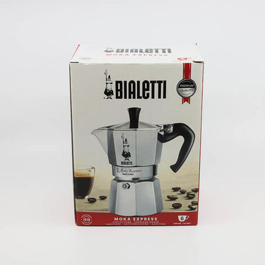 Available in 1 cup, 3 cup or 6 cup. The Moka pot is sustainable, long lasting and made out of aluminium with a thermoplastic knob and handle.