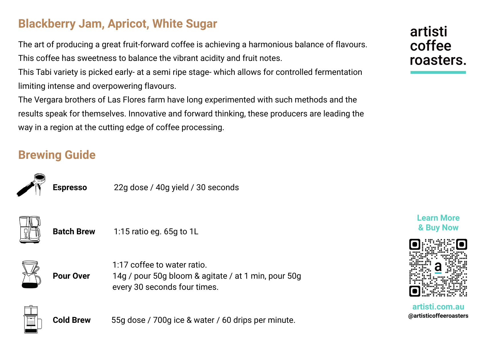 The Vergara brothers of Las Flores farm have long experimented with such methods and the results speak for themselves. Innovative and forward thinking, these producers are leading the way in a region at the cutting edge of coffee processing.