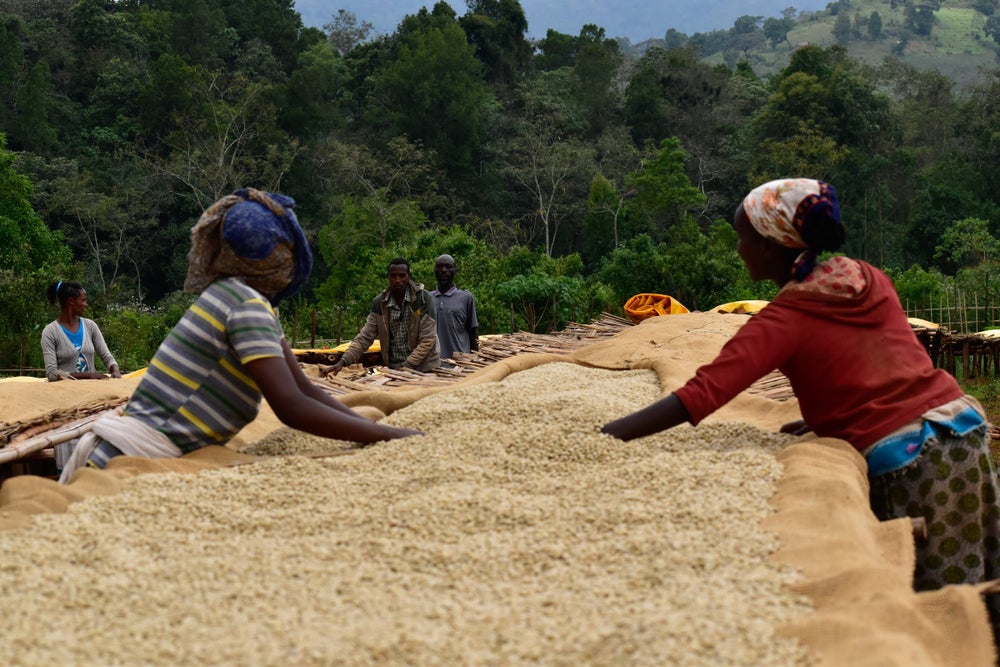 The coffee is a collection of the efforts of 2564 smallholder farmers. Their coffee is handpicked at peak ripeness and machine pulped, and undergoes anaerobic fermentation before washing. Finally, as is typical to the region, the coffee is sundried on raised beds for seven to ten days depending upon sun and humidity.